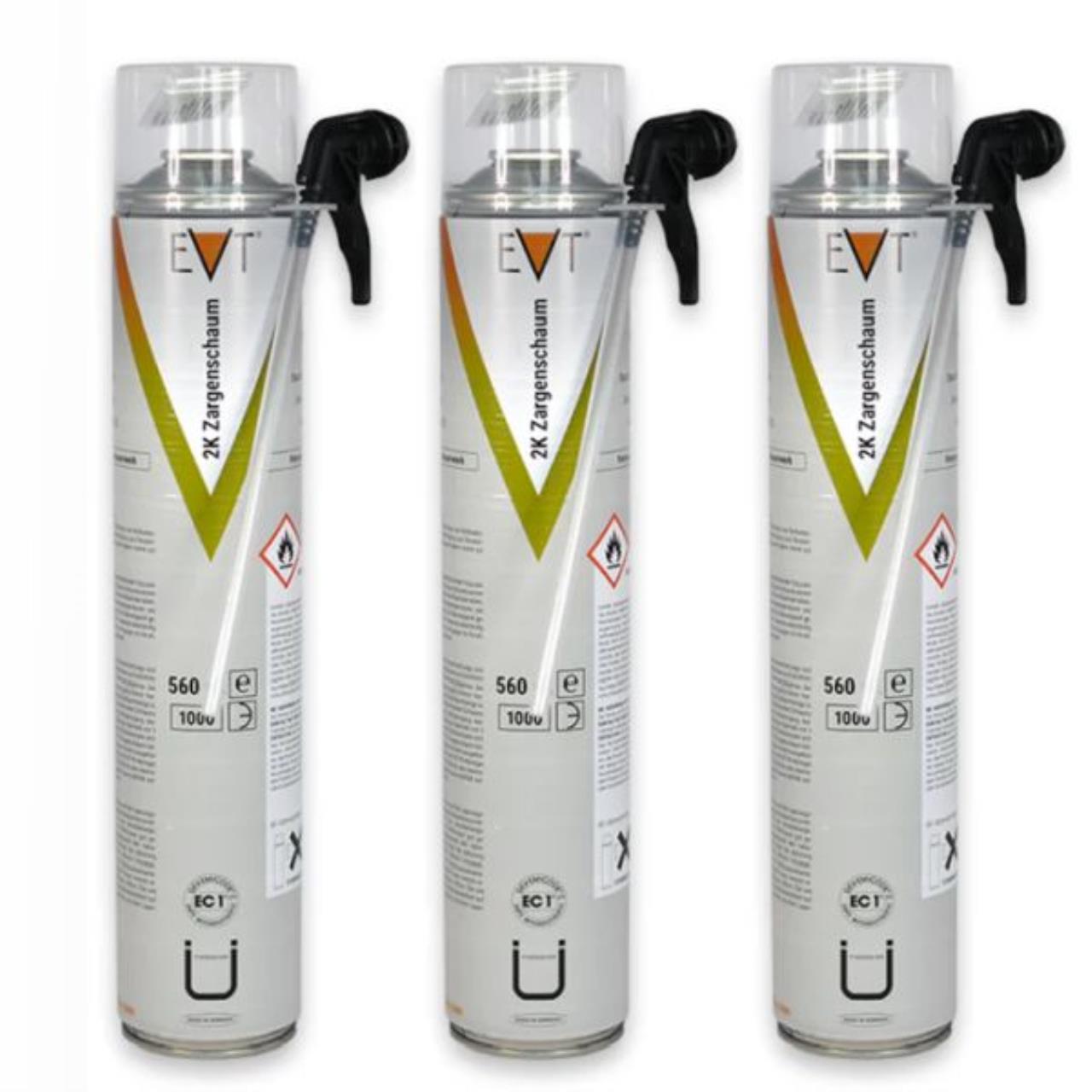 EVT 2K Zargenschaum ist ein extrem schnellhärtender, gebrauchsfertiger PU-Schaum zur Montage von Innentüren und Außen-Türzargen (mit zusätzlicher mechanischer Befestigung). EVT 2K Zargenschaum wird zur Montage und Isolierung von Fensterrahmen aus Holz, Stahl oder Kunststoff in Mauerwerk eingesetzt. Er dient zur Befestigung von Wannen- und Duschtassenträgern oder zur Verklebung von Wanne-in-Wanne Systemen.