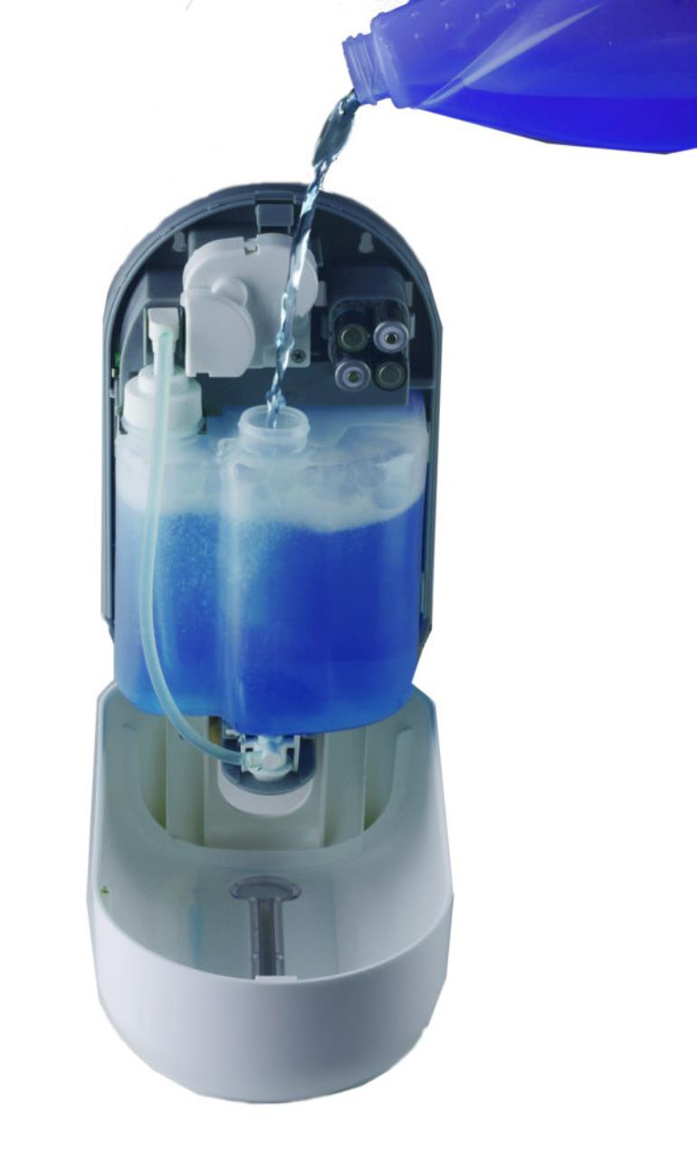 Zur Dosierung hält man die Hand unter die Dosierungsdüse. Der Dosierbereich des Spenders beträgt 1 – 8 cm, und dosiert wird 1 ml pro Mal.