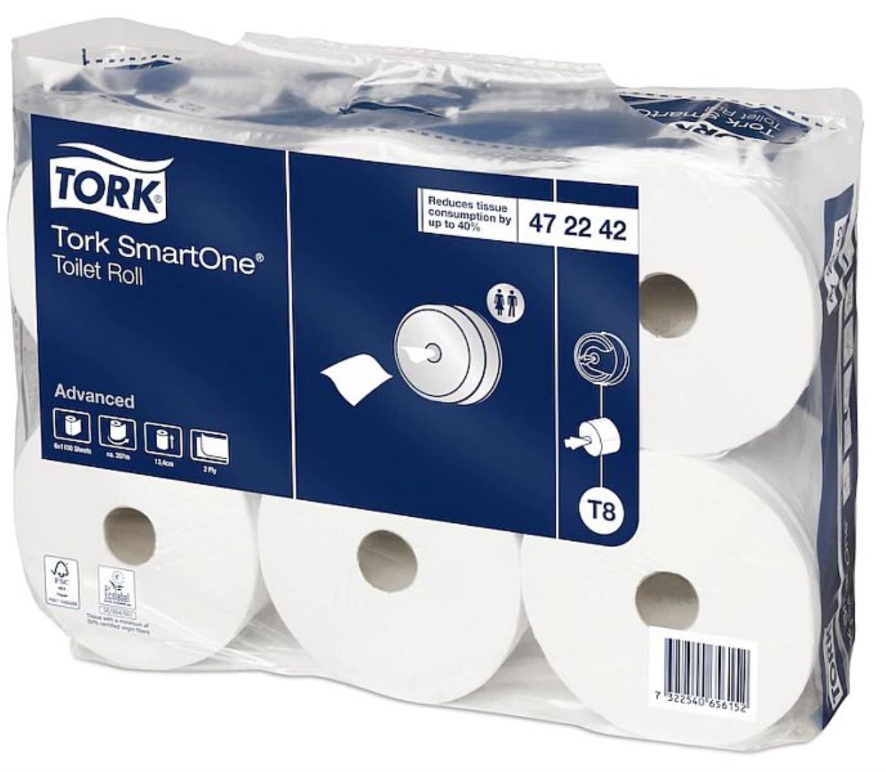 Das Tork SmartOne® Toilettenpapiersystem hilft mit seiner einzigartigen, hygienischen Einzelblattentnahme, den Verbrauch im Vergleich zu herkömmlichen Jumbo Toilettenpapierspendern um bis zu 40% zu senken. So sind mehr Toilettengänge pro Rolle möglich.Das Tork SmartOne® Toilettenpapier mit hoher Kapazität eignet sich für Waschräume mit hoher Besucherfrequenz.